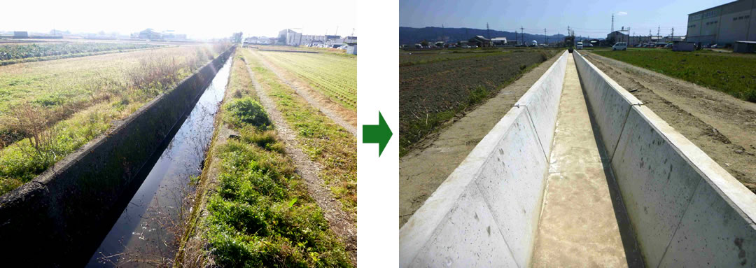 - 用排水路の小規模の補修、浚渫。但し、土水路からの全面新設は不可